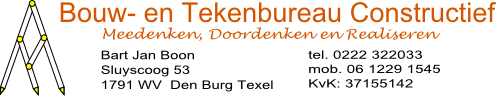 Wat de laatste jaren een enorme vlucht heeft genomen zijn de constructieberekeningen. Met uitzondering van eenvoudige constructies die niet onder een omgevingsvergunning vallen doe ik dit niet zelf. Het in de lucht houden van programmatuur is eenvoudigweg niet rendabel voor mij. Wel adviseer ik u om als u door mij een omgevingsvergunning laat verzorgen, u ook mij de constructieberekeningen laat verzorgen. Op die manier weet ik namelijk zelf ook wat er projectmatig gebeurd.